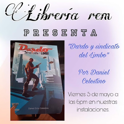 Librería Leem les hace la invitación a la presentación del cómic "Dardo y el sindicato del limbo" del creador visual Daniel Ortiz Celestino, este viernes 5 de mayo a las 18:00 horas.