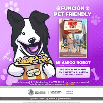 El Poder Ejecutivo del Estado de San Luis Potosí, a través de la Secretaría de Cultura, invita al público en general a disfrutar de la primera función Pet Friendly que se realizará en Cineteca Alameda con la película “Mi Amigo Robot”, filme nominado a los premios Oscar.